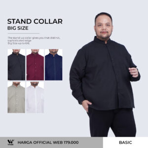 Kemeja Stand Up Collar Panjang Pria Big Size XL XXL XXXL GDE WGB