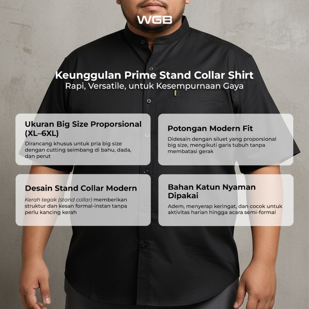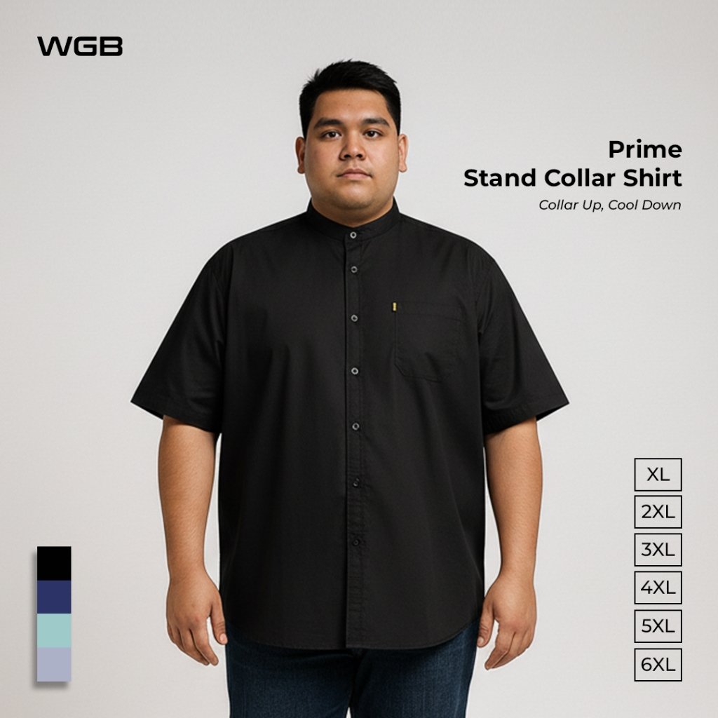 WGB Kemeja Stand Up Collar Lengan Pendek Pria Big Size XXL – Prime Series