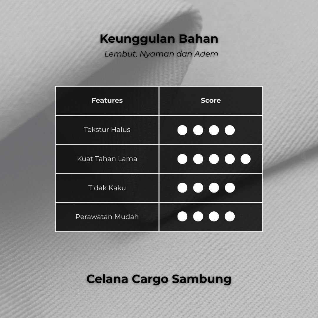 • Bahan : Stretched Cotton Poly blend