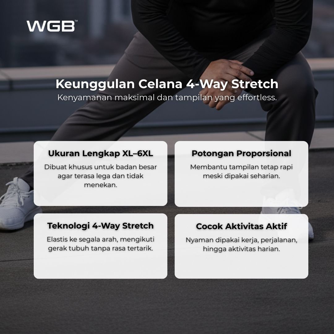 WGB Celana Formal 4ways Stretch Pria Big Size Ukuran Jumbo XXL – Prime Series