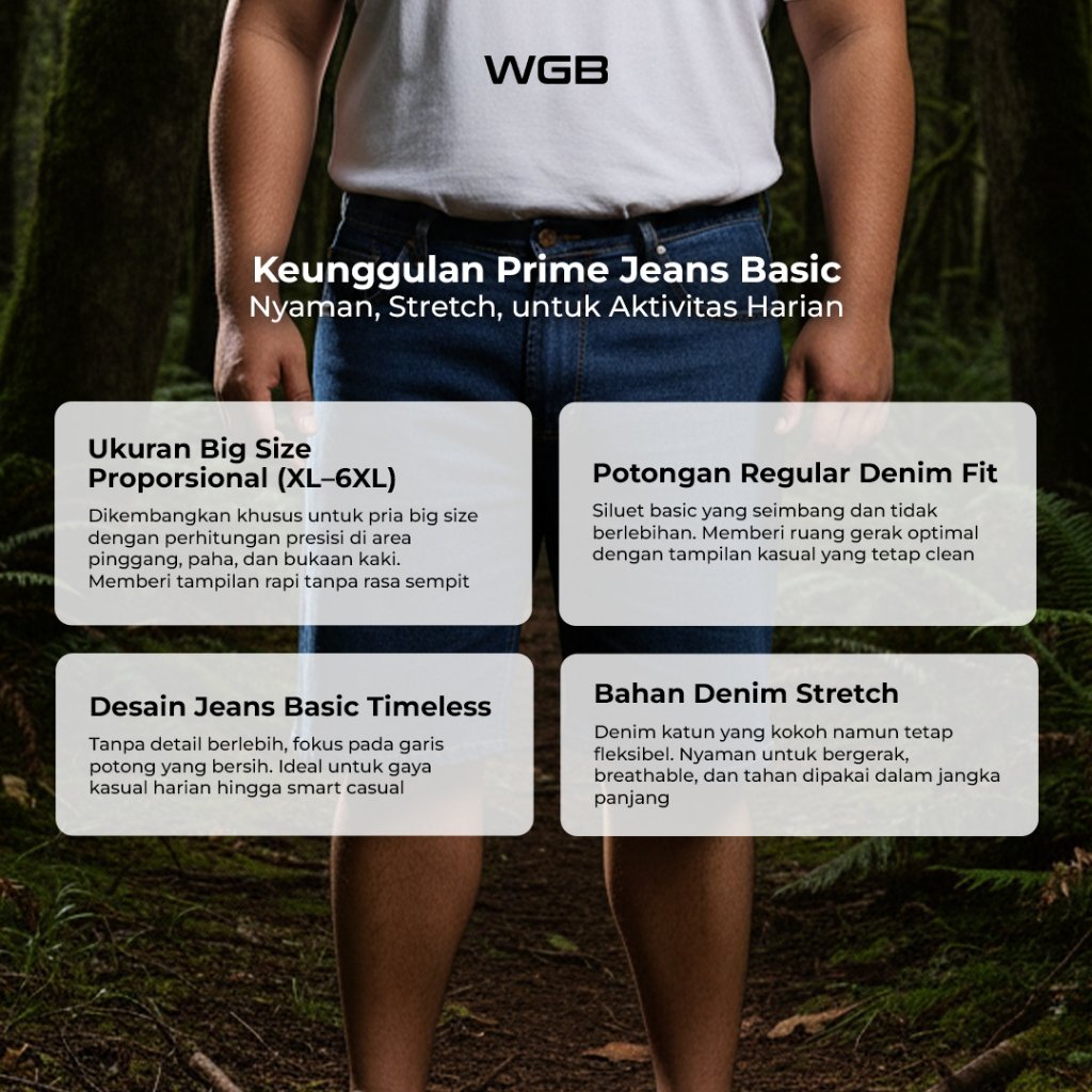 WGB Celana Jeans Panjang Basic Pria Big Size Jumbo Bahan Stretch XXL – Prime Series
