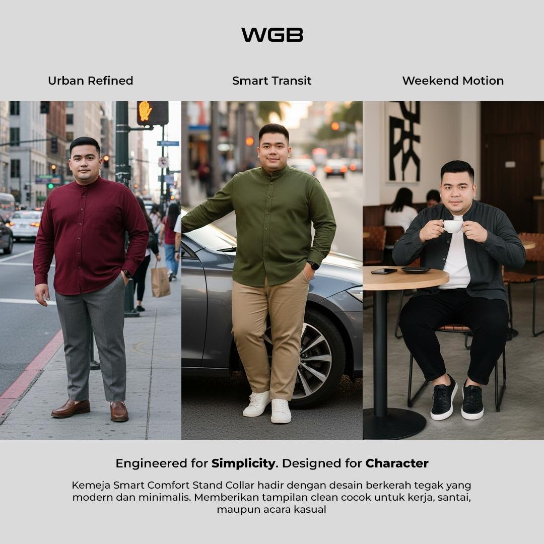 Kemeja WGB Smart Comfort hadir untuk pria Big Size yang ingin tampil rapi, berkelas, dan bebas bergerak setiap hari tanpa kehilangan rasa nyaman.
